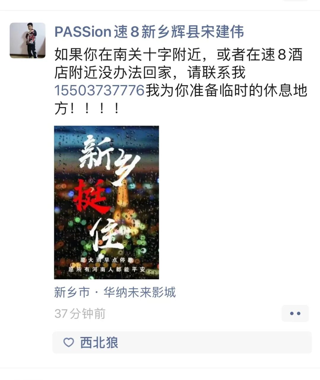 7月18日18時(shí)至21日0時(shí),許多人都在十萬(wàn)火急地幫忙轉(zhuǎn)發(fā)河南各個(gè)救援隊(duì)的官方聯(lián)系方式、提供臨時(shí)住宿的信息、受困人員信息等。河南遇到了一場(chǎng)“超千年一遇”的大雨。根據(jù)氣象局消息,從17號(hào)到20號(hào),鄭州三天內(nèi),下了往年一整年的雨量?;蛘吒庇^一點(diǎn),有網(wǎng)友將一小時(shí)200mm的降水量用西湖做單位衡量:相當(dāng)于1小時(shí)內(nèi)往鄭州灌進(jìn)了150個(gè)西湖。毫無(wú)疑問,這是一場(chǎng)巨大的災(zāi)難,但是在大自然的狂怒面前,速8竭盡全力伸手相助。